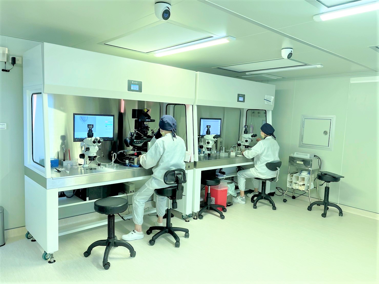 此外,要施行數位放大式單一精子顯微注射(IMSI),必須具備額外相關顯微鏡及攝影設備軟體,所用之耗材與傳統光學式是不同的。以往傳統式單一精子顯微注射(ICSI)是直接由光學顯微鏡放大400倍下一邊觀察一邊尋找活動力及型態正常的單一精子,捕捉後注射到卵子中,但若要在放大6000倍的情況下觀察精子,並將選定最頂級的精子挑選出來是不容易的,除了實驗室人員的技術純熟度外,挑選精子所耗費時間增加,會使精子曝露培養環境外時間太久而降低活動力, 卵子等候授精時間延長也會增加受精異常的風險,愛群胚胎實驗室不惜耗費鉅資,以AI輔助人工選精,精液檢體於光學顯微鏡下由AI標定型態及活動力正常的精子,再由人工於高倍率顯微鏡頭及數位放大儀器下篩選AI標定後的精子,進而省下人工挑選精子所耗費時間及提高受精率。